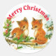 Sticker Rond Renard mignon et poulet à Noël de neige
