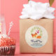 Autocollants d'anniversaire avec un arrière - plan couleur crème grunge aux formes géométriques chic et tendance. En haut, un dessin animé représentant un mignon renard orange dormant tranquillement. Une couronne feuille verte avec 3 petits coeurs rouges derrière. Texte dit : Merci d'être venu à<name's>fête d'anniversaire. Personnalisez avec un nom ou un autre texte.