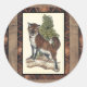 Sticker Rond Renard rustique sur un tronc d'arbre