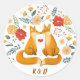 Sticker Rond Renards romantiques et Mariage de feuillage floral
