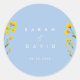Célébrez votre amour avec cette invitation de mariage aux fleurs sauvages bleues et jaunes, douce et romantique. Avec des florales délicates de boutons d'or sur un fond bleu poussiéreux, ce design allie le charme rustique à l'élégance intemporelle.