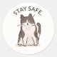 STICKER ROND RESTER EN SÉCURITÉ AVEC UN CHAT AMUSANT