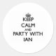 Sticker Rond Restez calme et faites la fête avec Ian