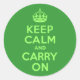 Couleurs vives et vertes modernes utilisées pour une parodie du design vintage "Keep Calm and Carry On".