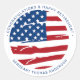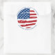 Le parti de retraite militaire du drapeau patriotique américain préfère les autocollants. Accueillez votre fête de retraite militaire avec ce drapeau des États-Unis patriotique fête de retraite de faveur autocollants. Drapeau américain moderne rouge blanc et bleu design. Ces autocollants de parti militaire sont aussi parfaits pour les fêtes de fin d'études militaires, les soldats s'en vont, les soldats accueillent la fête à la maison. Consultez notre collection pour les invitations à la retraite militaire, les cadeaux, les faveurs de fête et les fournitures. DROIT D'AUTEUR © 2021 Judy Burrows, Black Dog Art - Tous droits réservés. Sticker rond classique américain pour drapeau américain