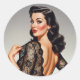Sticker Rond Retro Brunette Pin-up Girl 50's Glamour Style