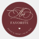 Sticker Rond Retro Burgundy Ivory Her Favorite Wedding Favor