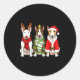Sticker Rond Retro Christmas Bull Terrier Santa Reindeer Dog Lo