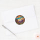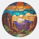 Sticker Rond Retro desert scene Sedona mountains stainglass art