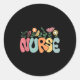 Sticker Rond Retro Floral Nurse Graphic Nursing Appreciation