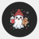 Sticker Rond Retro Ghost Beanie Christmas Holiday Xmas Coffee G