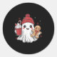 Sticker Rond Retro Ghost Beanie Christmas Holiday Xmas Coffee G