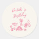 Sticker Rond Retro Hand Drake Pink Vaisselle Anniversaire Brunc