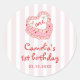 Retro Hand Drawn Valentine Girl First Birthday Classic Round Sticker