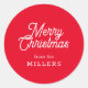 STICKER ROND RETRO MERRY CHRISTMAS TYPOGRAPHIE SUR ROUGE
