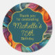 Ajoutez une touche de finition festive à votre fête d'anniversaire avec cet autocollant rond audacieux qui présente des floraux abstraits vibrants dans des teintes de coucher de soleil. Centré sur le message "Merci pour célébrer le 75e anniversaire de Michelle", ce design est parfait pour sceller des sacs de faveur, des boîtes-cadeaux ou des enveloppes. L'élégante police de caractères et l'arrière - plan coloré apportent énergie et charme à vos détails de fête. Customisez avec n'importe quel nom ou âge pour créer un autocollant qui convient à votre célébration.