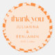 Sticker Rond Retro Orange Check Custom Wedding Thank You