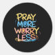 Sticker Rond Retro Pray More Worry Less Christian Faith Men Wom