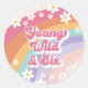 Sticker Rond Retro Rainbow Young Wild et Six 6e anniversaire