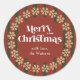 Sticker Rond Retro Rouge & Vert Joyeux Noël Nom personnalisé