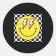 Sticker Rond Retro Smile Face Checkered Pattern Preppy Happy Fa