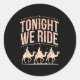Sticker Rond Retro Tonight We Ride Three Wise Men Christmas Nat