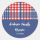 Sticker Rond Réunion en famille En vichy rouge, blanc et bleu