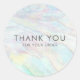 Elegant faux opal coquille merci stickers dans de jolis tons pastel rose, bleu, vert et jaune avec votre message personnalisé. Idéal pour ajouter à l'emballage pour les créateurs de bijoux et autres petites entreprises.