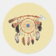 Cet autocollant a été conçu pour coordonner avec les fournitures de la fête à thème occidental dans ma collection "Americana". Il a une représentation graphique d'un attrapeur de rêves tressé. Elle est faite de plumes brunes et grises et de perles colorées le long des brins du tissage. Le attrapeur de drague est accroché à une flèche à plumes. Idéal pour le thème du Sud-Ouest