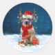 Sticker Rond Rhodesian Ridgeback Chien dans neige cadeau de Noë