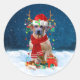 Sticker Rond Rhodesian Ridgeback Chien dans neige cadeau de Noë