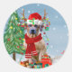 Sticker Rond Rhodesian Ridgeback Chien dans neige cadeau de Noë