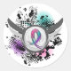 Sticker Rond Ribbon turquoise Violet Rose Et Ailes Thyroïde Can