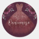 Autocollant rond classique Robe à paillettes burgundy et fête Quinceanera florale