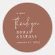 Ce sticker moderne chic en terre cuite rouille un doux merci classique rond collant est parfait pour une simple réception de mariage. Le design boho du désert présente une typographie bohème rustique unique et élégante, dans une couleur de rouille orangée brûlée. Personnalisez les étiquettes autocollants avec vos noms, et la date. Ces autocollants peuvent être utilisés pour des produits de boulangerie, ou une faveur de mariage de bonbons.