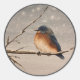 Un Robin à poitrine rouge se tient paisiblement sur un membre dans la neige.