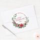 Sticker Rond Robin & Fleurs de Noël & couronne sainte