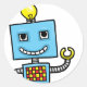 illustrant une illustration numérique d'un robot rétro bleu souriant avec une ampoule sur le sien alors qu'il flâne ses bras.