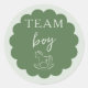 Celebrate your big surprise in timeless, preppy style with this elegant Team Boy Gender Reveal Party Sticker, designed for modern parents who love classic, heirloom-inspired baby celebrations. Featuring a soft sage green background, a charming vintage rocking horse illustration, and sophisticated typography, this design blends old-money baby shower aesthetics with sweet, playful charm.