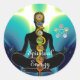 Sticker Rond RODE D'ASCLEPIUS 7 CHAKRAS, YOGA LOTUS POSE Bleu