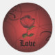 Une belle rose rouge sur un arrière - plan rouge foncé et le mot "amour" sur ces autocollants gothiques.