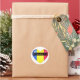 Découpe du coeur du drapeau de la Roumanie avec superposition du texte étiquette