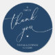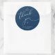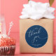 Modern Wedding minimalist Thank You Cookies Gifts Classic favors Round Sticker, in romantic script, little heart, with bride and groom signature and wedding date, navy blue theme.