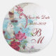 Sticker Rond ROMANTICA MONOGRAM, Enregistrer la date, blanc