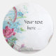 Design floral élégant, classe, dynamique et classique. Rouge, roses roses roses, fleurs bleues avec une colombe blanche portant une lettre dans un paysage marin.