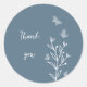Autocollant mariage simple unique avec fleurs blanches romantiques et élégantes et papillons sur arrière - plan bleu poussiéreux POUR PLUS DE PRODUITS CORRESPONDANTS cliquez sur la collection ci-dessus ou contactez-moi.
