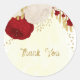 Sticker Rond Romantique rouge foncé & fleurs blanches or mariag