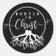 Enracinée dans le Christ, cette conception présente un design noir et blanc avec les racines d'un arbre et un texte disant "Enraciné dans le Christ".