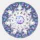 Flocon de neige avec mon dessin d'un vitrail d'une ancienne église européenne : une fenêtre rose, avec des touches d'une grande variété de couleurs, y compris les tons bleus, sur un arrière - plan bleu marine. Inposition de strass bleu clair (dessiné). Pour un vieux motif d'hiver. Ce motif est également disponible en rouge cardinal dans mes collections "cardinal rouge rosace".