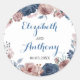 Sticker Rond Rose bleu marine Aquarelle Mauve Mariage floral